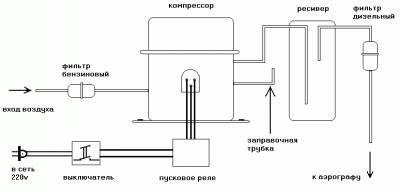 статья о применение старого компрессора от холодильника, для использования в аэрографе.