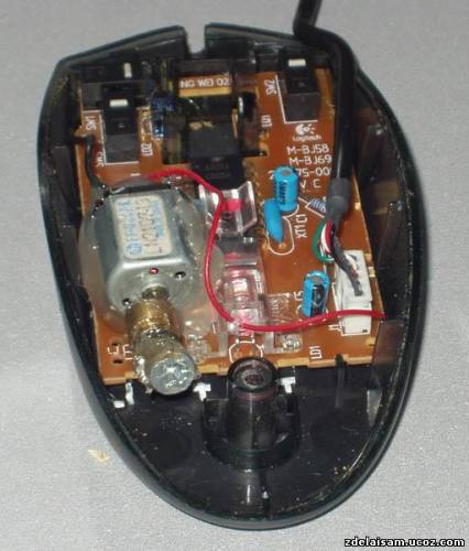 Как-то я приехал к другу в гости со своим компом. Создали сеть, поиграли, и немного утомились от компов. Решили отдохнуть и развлечься. Он у меня радио электронщик, телемастер, в общем может отремонтировать всё что угодно, человек с руками но без идей. А я наоборот, человек с идеями но без мозгов, но с руками. Он стал что то как всегда паять и модернизировать свой сверх навороченный системник. А я не зная что делать, залез к нему в ящик с хламом и стал копаться, и нашёл там обыкновенный китайский моторчик. И тут меня озарило идеей, а не вставить ли его в мышку. Кстати вместо моторчика можно использовать вибратор из старого мобильника. Просто до компа у меня была приставка Сони, и у неё джойстики были с вибро функцией, было очень прикольно играть. А тогда мы играли в Far Cry. Вот я и подумал, что будет не плохо, когда во время стрельбы, в момент когда кнопка нажата, мышка будет трястись как при отдаче.
