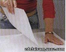 2. Прижимаем верхнюю часть к нижней и разглаживаем материал руками. Если вы используете загрунтованную ткань, то волокно на пальцах не остается.