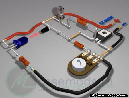 Когда вы приобретёте все детали, вооружайтесь паяльником и принимайтесь за сборку. Для проведения опытов не стоит делать печатную плату, можно собрать всё навесным монтажом. Спаивайте так, как показано на рисунках.