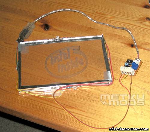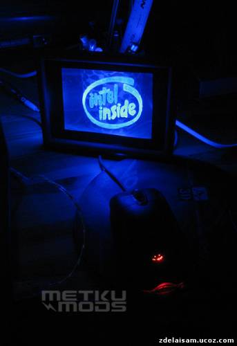 Для листа со словом «Intel» был использован один светодиод, как и для слоя «Inside». А вот для подсветки изображения овала сделаны два светодиода, расположенные на противоположных сторонах.