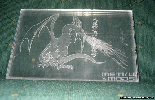 Japala делает гравировку с обратной стороны листа акрила. Это улучшает рассеивание света и делает картинку ярче. Только необходимо запомнить, что изображение необходимо делать в зеркальном отображении. Сам моддер признается, что иногда забывает эту простую истину. Это не так важно с произвольной картинкой, а вот листы с текстом можно выбрасывать.