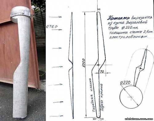 Пропеллер изготовил из метрового куска дюралевой поливной трубы диаметром 220 мм с толщиной стенки 2,5мм.