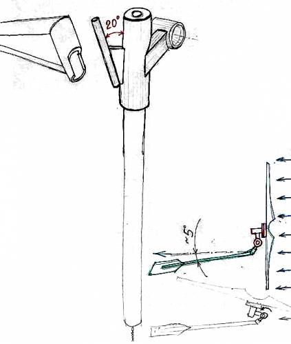 Так как магнитное залипание отсутствует, пропеллер весело вращается от малейшего ветерка, которого на земле даже не ощущаешь. При рабочем ветре развивает высокие обороты, у меня амперметр на 2А прямого включения, так он часто зашкаливает на 12 вольтовый старый автомобильный аккумулятор. Правда при этом начинает складываться и подниматься вверх хвост, т.е. срабатывает автоматическая защита от сильного ветра и чрезмерных оборотов.