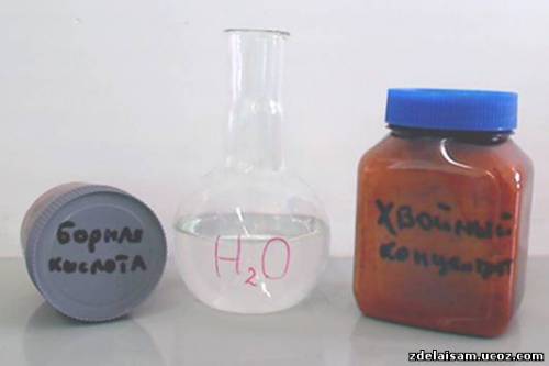 Для изготовления люминофора нам понадобится хвойный концентрат и борная кислота.