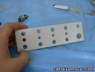 .... и Просверливаем в ней отверстия под выключатели и светодиоды.