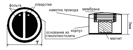 Мембрана добывается из китайских наушников ( причем чем более китайский наушник тем лучше т.к. мембрана тоньше "мне кажется они даже полиэтилен экономят" поскольку излишняя жесткость мембраны влияет на громкость наушника). Провод для катушки добывается из реле типа РЕС-10. Катушка мотается на стержне авторучки D=2.5мм для того чтобы намотка не расползалась на стержень одеваются шайбы-ограничители. В стержне проделывается отверстие в которое суется один конец провода. Перед началом намотки в первый раз следует потренироваться и намотать несколько пробных катушек они не должны быть очень большими т.к. могут в дальнейшем цепляться за магнит. Сопротивление катушки должно быть в пределах 20-80 Ом, это примерно 80 и более витков. При намотке провод слегка смачивается "моментом" или БФом, можно и суперклеем, но аккуратно, чтобы катушка потом не развалилась когда вы ее будете снимать. Сразу же после намотки она снимается чтобы не засохла, если же все-таки засохнет и прилипнет, то можно использовать спирт который быстро растворяет момент. После нескольких неудачных попыток снять катушку с каркаса и не повредить, ее надо приклеить к мембране!!!!!!!!!!! использовав при этом минимум суперклея. Ни в коем случае не намажте суперклеем мембрану в местах, где она не соприкасается с катушкой – иначе мембрана станет жесткой и наушник будет тихо работать. Залудите проводки катушки на расстоянии от нее 2 мм.