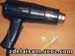 После того как клей хорошо просохнет, мы добавляем, согласно схеме, отсутствующие соединения, для этого используем эмалированный проводник. В местах, где он будет проходить, проливаем умеренным количеством китаиского секундного клея, чтобы не перемкнуло (изоляция). В завершении полученую конструкцию помещаем в термоусадочную трубку (батарейка должна находится в фассунге!), нагреваем строительным феном или зажигалкой, со стороны батарейки нагретую трубку зажимаем пинцетом, торчащие конечности аккуратно удаляем скальпелем. Правильно собранный наушник будет издавать лёгкое шипение!