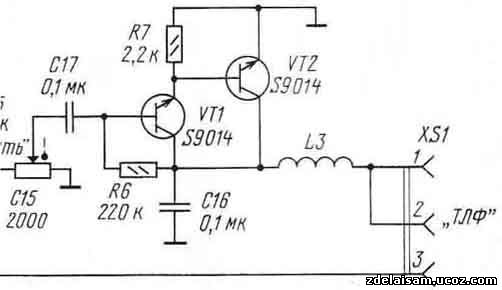 Из нее мы видим, что большая ее часть не используется, а используется всего усилитель ЗЧ собранный на двух транзисторах! Мы можем заменить их отечественными, к примеру, КТ3102. Будет не хуже, а может и лучше. Этот усилитель способен с искажениями отдать мощность, которой будет достаточно для качественной работы наушника. Но есть и подводные камни эта схема не даст качественного звука и он будет на уровне промышленных образцов! Но мы вить радио любители и не остановимся на достигнутом.
