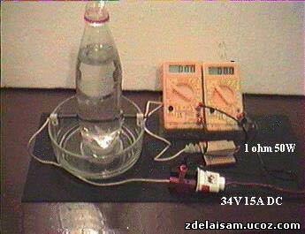 одним из полюсов трансформатора ( 34В/15А постоянного тока), другой полюс
