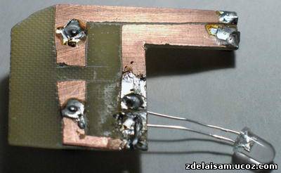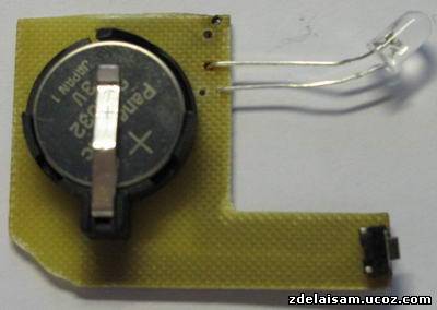 3-х вольтовая батарейка, гнездо от старой материнки, кнопка от сломанной мыши и сверх яркий светодиод - всё что нам потребуется. Ну и ещё кусочек фольгированного текстолита.
