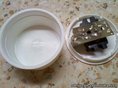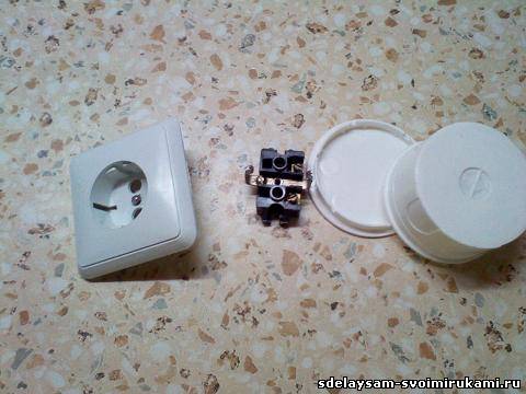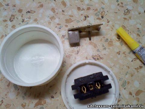 Взял ненужную розетку и круглую коробочку, короче не так важно и всё собрал так :
