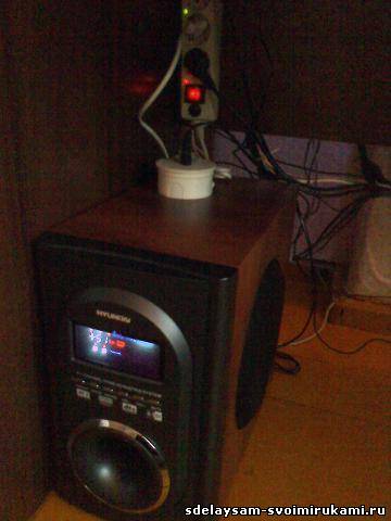 Подключаем к компу и втыкаем в акустика. Включаем комп и вместе с ним включается акустика!