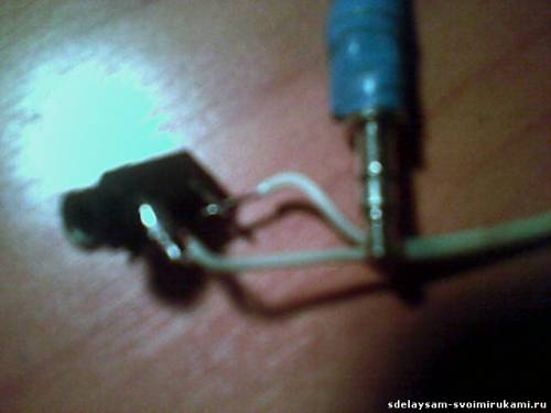 В принципе можно купить готовый шнур .Так же продаются штекеры и гнезда .Чтоб не тратиться можно взять гнездо из плеера ,а штекер от старых наушников(срезать ножом изоляцию и припаять провода)
