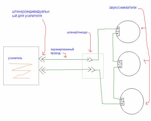 -Те же операции проделываем с оставшимися динамиками… поздравляю 3 звукоснимателя готовы . Вот что должно получится: