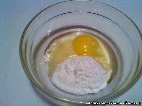 Делаем кляр. Для этого (на 2-4 банана) берем 1 яйцо, 1,5 столовые ложки муки и 1,5 столовые ложки сахара (лучше сахарной пудру).