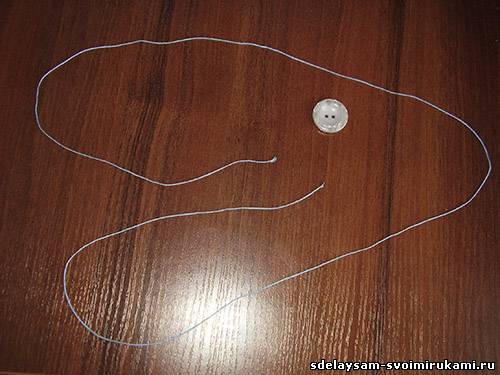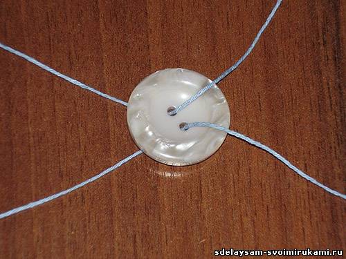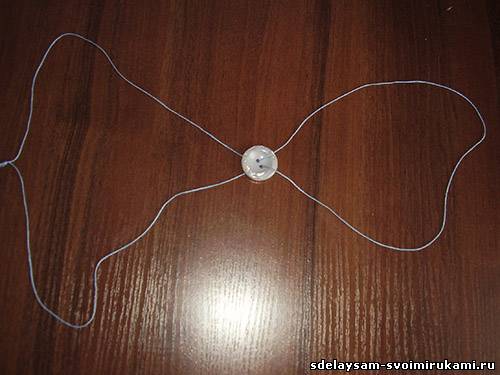 Потом продеваем через пуговицу нитку, как показано на рисунке, и связываем концы.