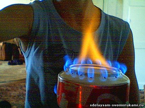 Самодельная спиртовая горелка может пригодится, скажем, на рыбалке, в походе, в лесу. С помощью нее можно разогреть пищу или вскипятить воду. Так же можно использовать в других различных опытах и экспериментах.
