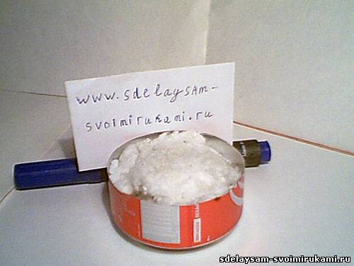 №3: Кладем вату в одну из банок (лучше использовать стекловату. Она не горит, не тлеет и более хорошо выдерживает высокие температуры):