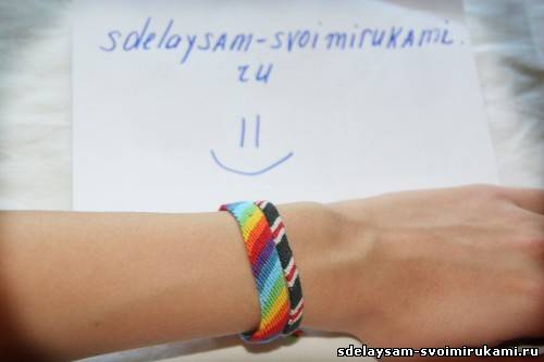 Фенечка готова! Экспериментируя с сочетаниями цветов, можно добиться удивительных результатов.