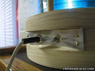 Самое сложное в конструкции этого светильника - это изготовить корпус. Его придется делать или на токарном станке, или вырезать эти кругляшы из ДВП или фанеры. Так же можно использовать все что устраивает нас по форме. Вариантов много)