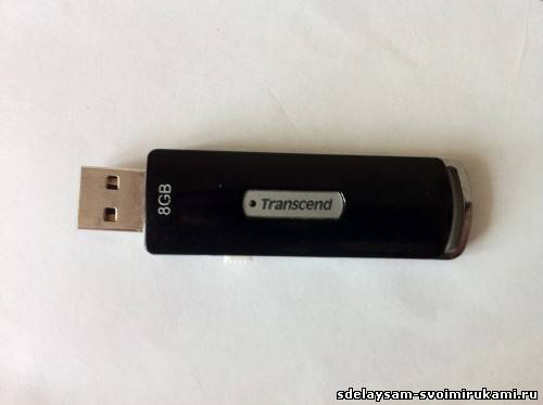 Мне очень нравился дизайн этой флешки. Я потратил много времени на поиски в магазинах точно такой же, но безрезультатно. Но пока я бегал по магазинам, у меня возникла идея перенести внутренности из другой флешки в корпус моей мертвой. Когда я вернулся домой, то первым делом разобрал свою мертвую флешку и оценил особенности крепления ее платы в корпусе. Оценив ситуацию, я сделал вывод, что в этот корпус может поместиться плата от обычной выдвижной флешки. Сразу же был приобретен донор, которым оказалась выдвижная флешка Transcend объемом 8 гигабайт.