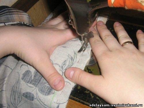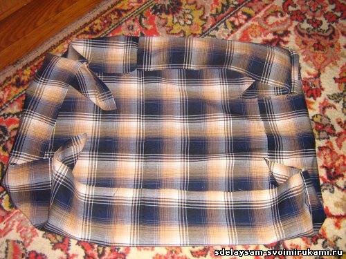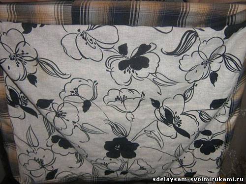 Должен получиться вот такой мешочек. Не забудьте оставить в чехле отвестие для наполнения чехла пенопластом.