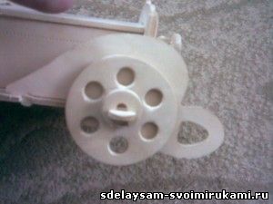 ![]() ![]() | После этого надеваем колеса, и фиксируем их. Для фиксации необходимо провернуть заглушки, как показано на фото. |