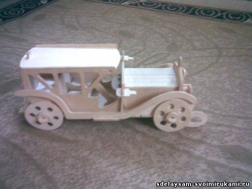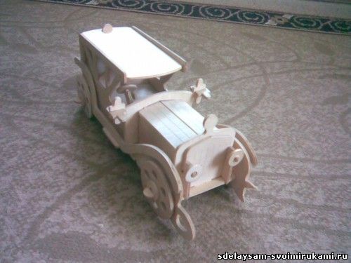 ![]() | Любите работать с деревом? Тогда это специально для Вас! Сегодня я покажу Вам, как можно собрать из фанеры модель старого автомобиля. Итак, начнем. Сперва Вам нужно выпилить лобзиком следующие заготовки: Это основание всего автомобиля. Левая часть – передняя часть. |