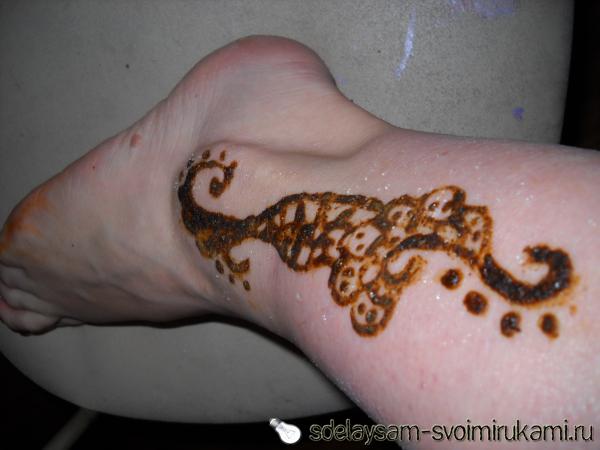 Для этого нужно иметь минимальные навыки рисования и заранее приготовленные материалы. Спешим вас огорчить, пакетик обычной хны для окрашивания волос для этой цели не подойдет, необходимо найти специальный порошок для росписи по телу. Черная хна зачастую дает аллергическую реакцию, поэтому перед использованием сделайте пробу, нанеся массу на локоть и оставив её на сутки.