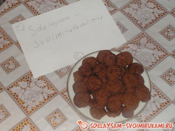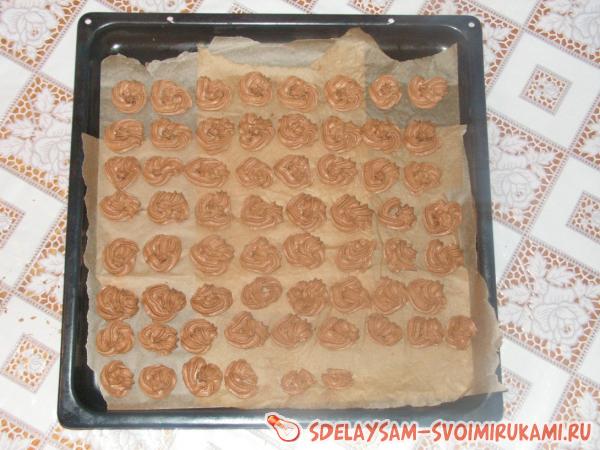 После того, как тесто начинает вязнуть, завершаем процесс перемешивания и наполняем тестом шприц. Насадка может быть любая, по желанию. Выдавливаем печенюшки произвольной формы на лист.