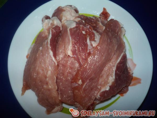 Мясо следует порезать на кусочки и очень тщательно его отбить. Чем тоньше у вас получатся кусочки мяса, тем вкуснее будет ваш шницель. Отбивая мясо, немножко раздвигайте волокна. Это поможет вам придать шницелю красивую форму.