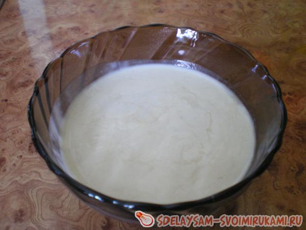 Берем емкость и смешиваем муку с пивом, хорошо перемешав, накрываем сверху чем-нибудь и оставляем на 2-3 часа для набухания.
