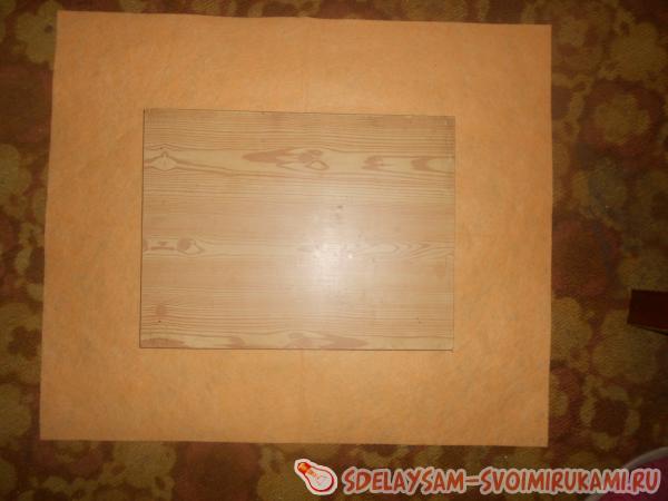 1. Для этого потребуется ворсистая ткань (драп, фланель, флис или бархат), плоскость, предназначенная для обшивки, и игла с ниткой. Ткань берётся большего размера, чем площадь самой плоскости.