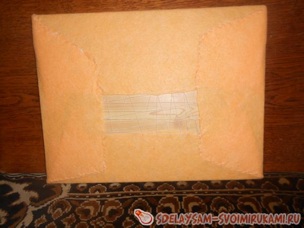 4. На изнаночной стороне фланелеграфа края ткани закрепляются нитками, подобно того, как зашивают на почте посылки. Если края материи не сходятся, допустимо затянуть их при помощи ниток.