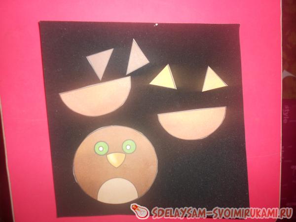 6. Наклеить их на бархатную бумагу так, чтобы ворсистая часть бумаги была с изнаночной стороны аппликации.