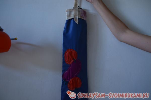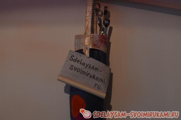 Условия для мытья на природе ограничены и лучше это сделать дома. Для украшения срезов можно использовать фигурные ножницы. Необходимая деталь чехла – ручка. ЕЕ можно сделать в форме петли, любого размера. В доме это даст возможность повесить чехол на крючок, что украсит кухню и станет украшением интерьера.