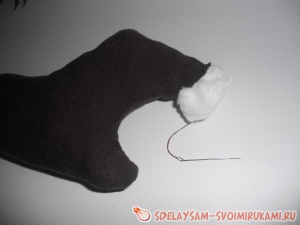 Выворачиваем сшитую основу для тельца игрушки на лицевую сторону. Потом набиваем игрушку (плотно, но не туго) и аккуратно зашиваем отверстие.
