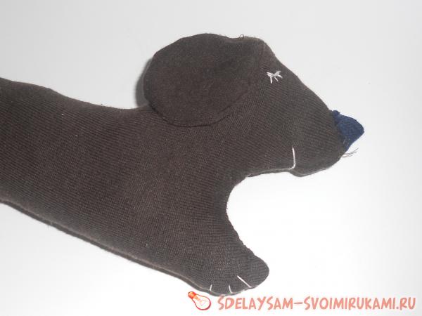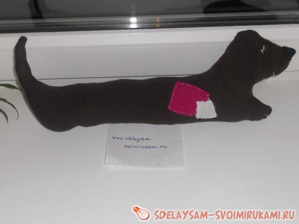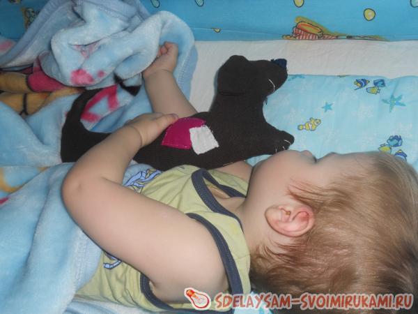 Всё, игрушка для сна «Такса» готова. Для украшения можно нашить на игрушку заплатки из яркой ткани, прикрепить бант или сделать чехольчик на спинку.