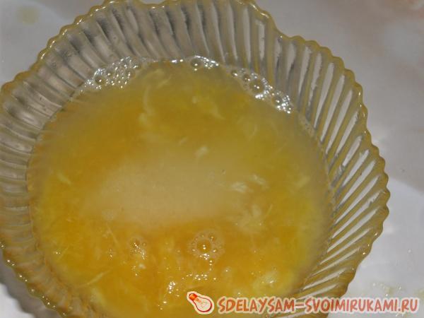 Залейте полученную массу цитрусовым сиропом, и хорошенько перетирайте корочки.
