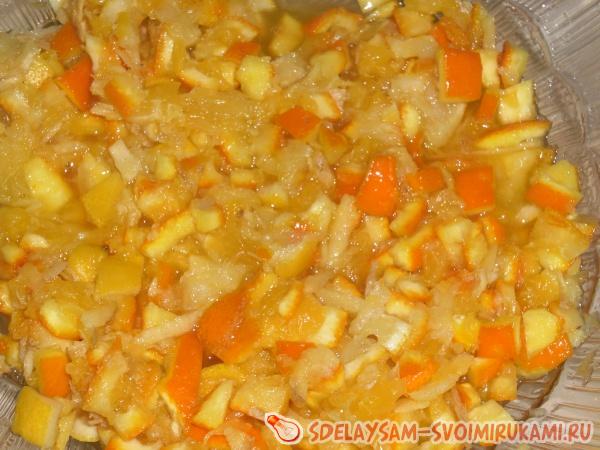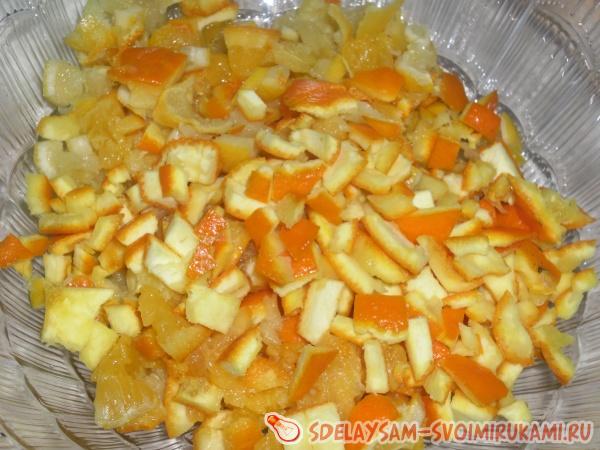 Цитрусовые корочки размельчите.