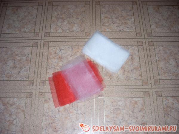 1. Берем отрезы фатина и режем их на полосы. Ширина полос - 25 см, длинна – 50 см.