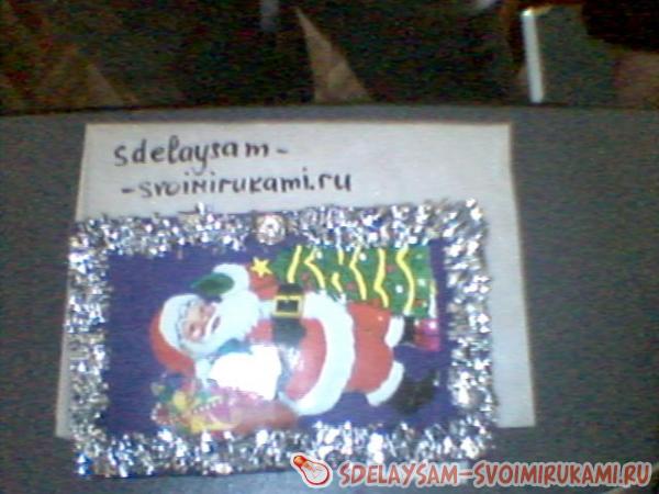 Кнопка, отжавшись, включает голосовое сообщение. Это может быть ваш голос или просто музыкальный фрагмент из любимого мультика. По углам вставлены светодиоды, которые, перемигиваясь, придают подарку ещё большую привлекательность.