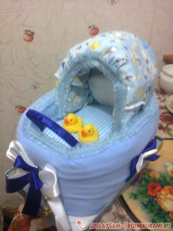 Для того чтобы изготовить коляску из подгузников вам потребуется: