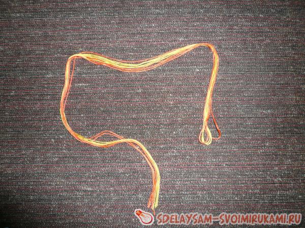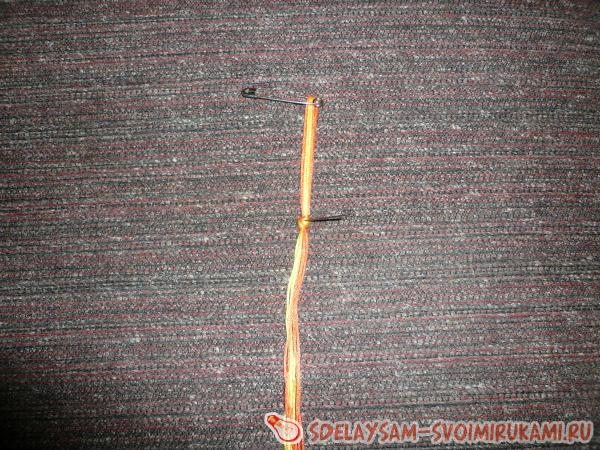 Для этого нам понадобятся: нитки мулине (я использовала всего 2 цвета – оранжевый и жёлтый, но вы можете комбинировать и большее количество оттенков), булавка, ножницы и швейная игла.
