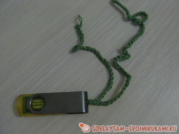 Когда шнурок готов, продеваем его в специальное отверстие на флешке.