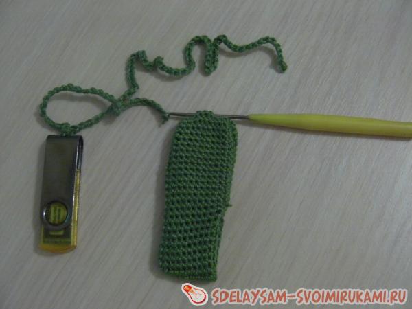 Вначале вязания следует измерить длину и ширину флешки. Связать цепочку из 25 воздушных петель, в полтора раза больше, чем длина самой флешки.