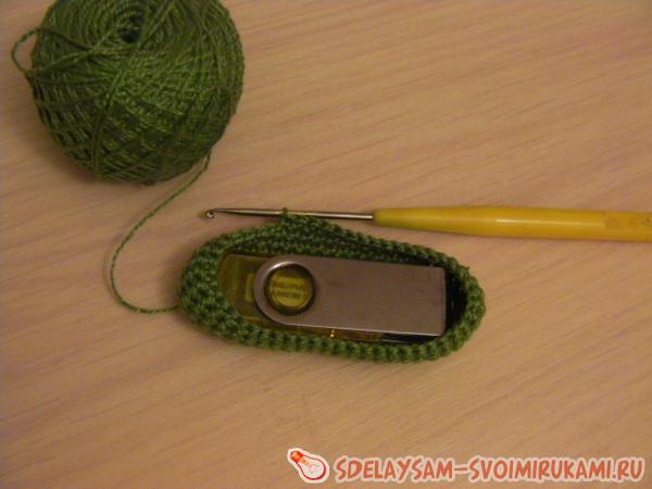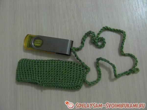 Предлагаю связать в качестве подарка оригинальный чехол для электронного носителя. Кроме приятных впечатлений, человек получит полезную вещь для предупреждения повреждений флешки при падании или воздействии низких температур.