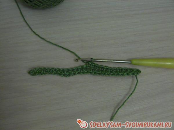 Далее первый ряд нужно вязать столбиками без накида, в последнюю воздушную петлю выполнить 3 столбика.