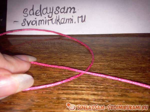 Отрезаем жгут (шнурок) нужной длины, и осторожно пришиваем его к сердцу, шелковые нитки крепкие, но все, же нужно пришить туго, именно за эту петельку будет вешаться сердечко.